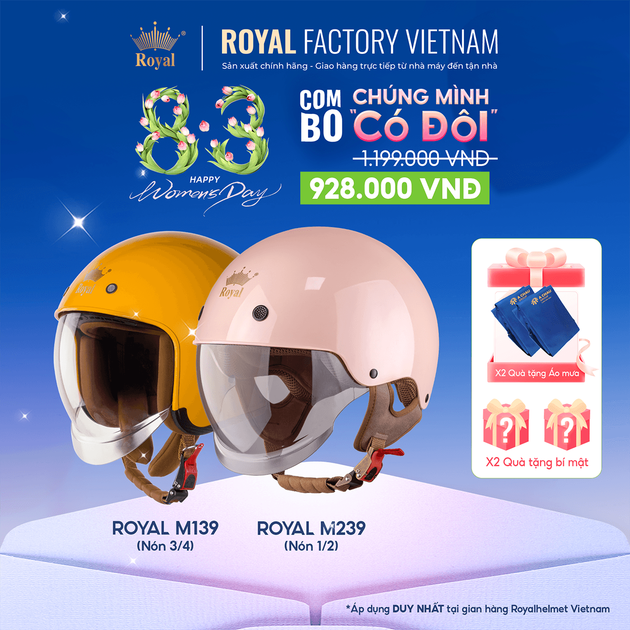 [Combo Chúng Mình Có Đôi] Mũ Bảo Hiểm Kính Âm Royal /4 M139, Mũ Bảo Hiểm 1/2 Kính Âm M239 | Trực tiếp từ nhà NXS