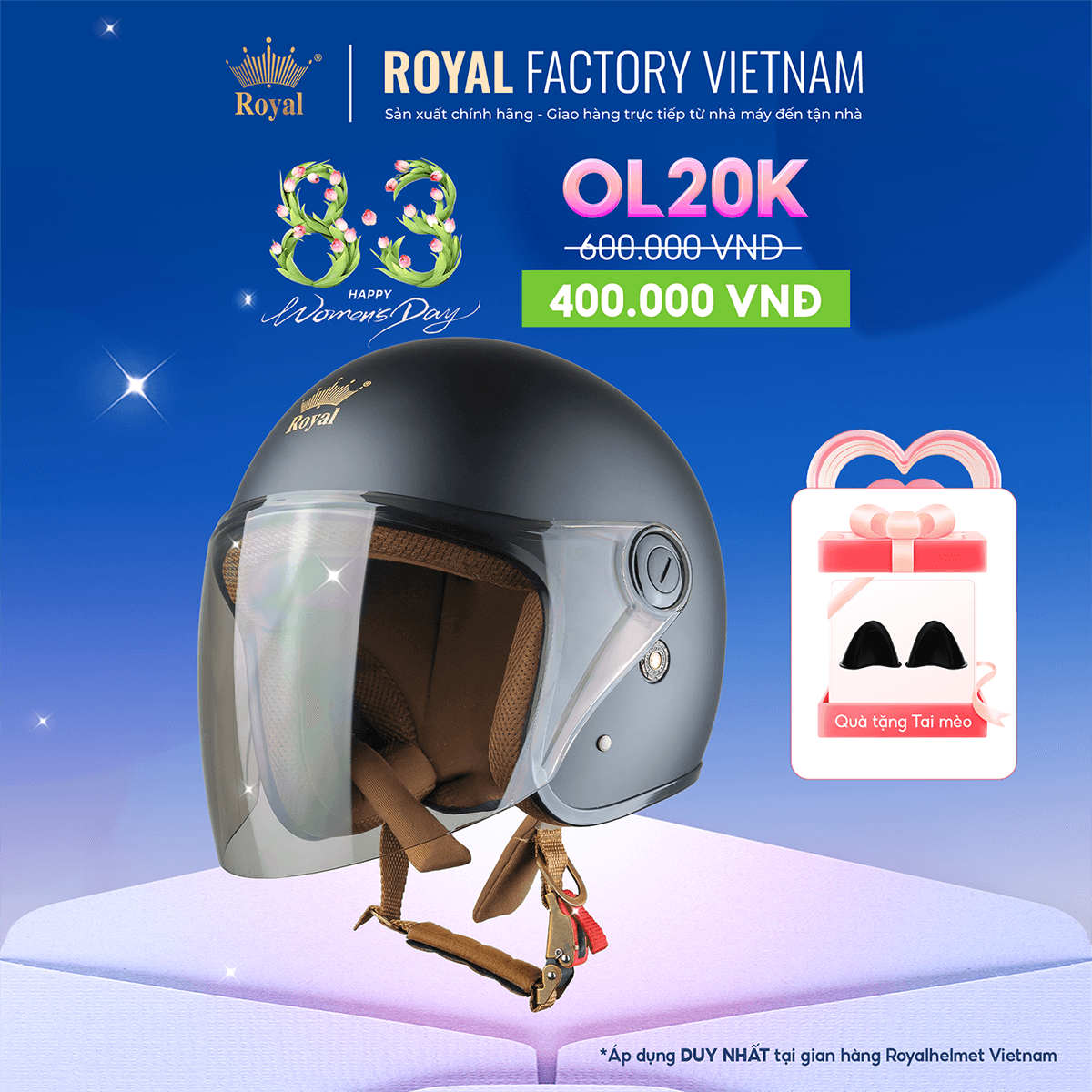 Phong cách: Nón bảo hiểm Royal OL20K có phong cách thiết kế đơn giản, màu sắc phù hợp cho mọi đối tượng người đội, cả nam lẫn nữ đều có thể sử dụng.